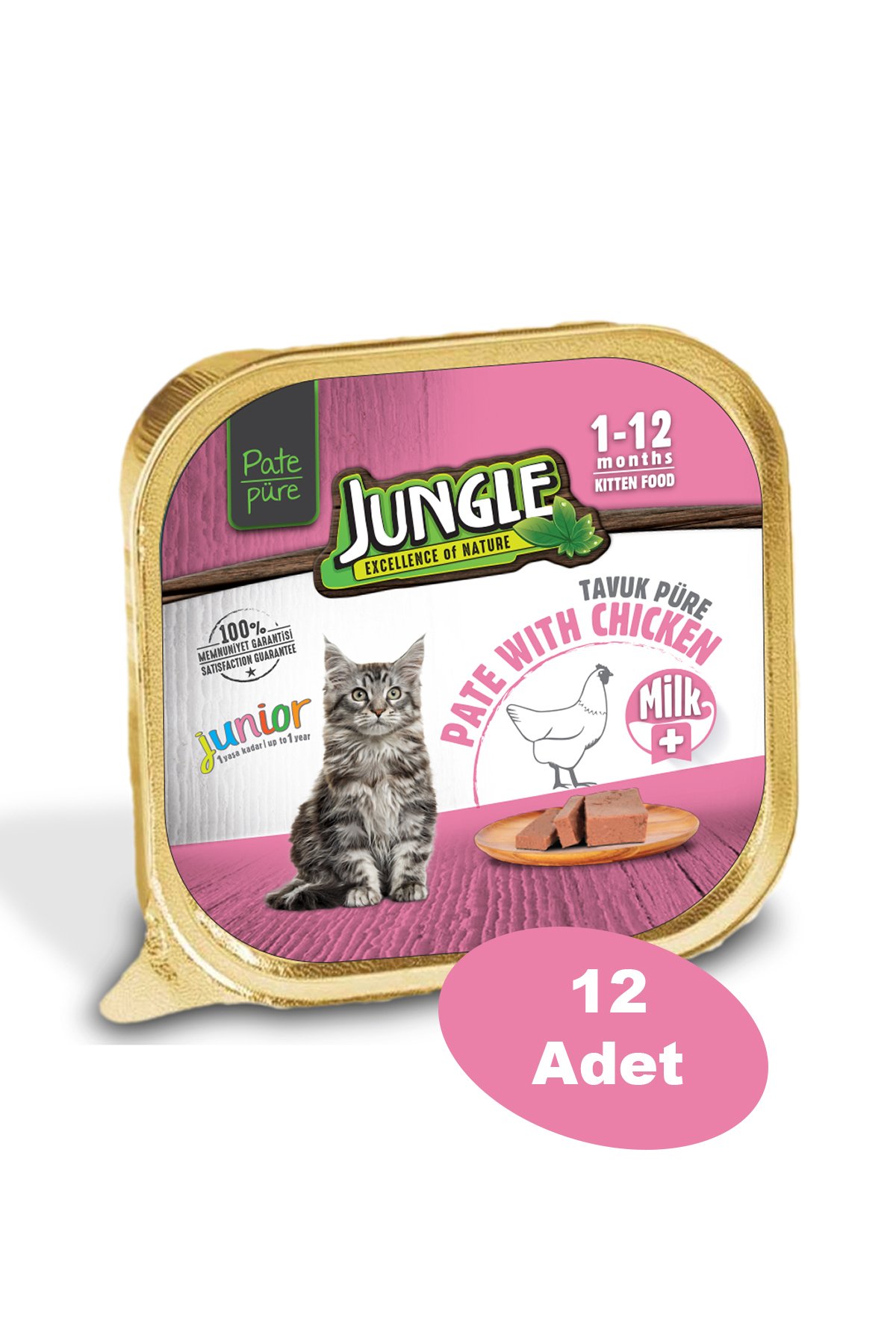 1. Jungle Püre Kedi Maması, 0 ile 1 yaş arası Yavru Kediler için özel olarak formüle edilmiştir.; Tavuk Eti ve Besleyici Süt ile hem lezzetli hem de faydalıdır.; Kedinizin günlük besin ihtiyaçlarını karşılayarak sağlıklı bir yaşam sürmesine yardımcı olur.; Dayanıklı ve yumuşak, saf kıvam özelliği sayesinde, düşük veya bozulma problemi yaşayan şehirler için de uygundur.; Ürün Özellikleri: • Pürenin kıvamında olduğu için dişleri tam gelişmiş minik çizgiler için kolay tüketilebilir.; • Vitamin ve minerallerle zenginleştirilmiş içerik sayesinde bağlantılarını birleştirir.; • Omega-3 ve Omega-6 yağ asitleri içeriği ile parlak ve sağlıklı tüy oluşumuna katkı sağlar.; • Lezzeti sayesinde seçici dilimler bile bayılar tüketir! Tüm Yavru Kediler İçin Uygun: • 0-12 aylık yavru kedileri için uygundur.; • Ekstra besine ihtiyacı olan zayıf ya da hasta şehirleri.; • Katı mama yemekte zorlanan yavrular.; 2. İçerik ve Besin Değerleri Ana İçerikler: • Tavuk ve Süt ile – Yüksek kaliteli hayvansal protein içerir.; • Hayvansal yan ürünler – Kedilerin doğal beslenme ihtiyaçlarına uygun üretici politikaları içerir.; • Vitamin ve mineraller – Bağışıklık sisteminin güçlendirilmesiye, deri ve tüylerin dağılmasında yardımcı olur.; • Taurin – Göz ve kalp sağlığınızı koruyan temel bir amino asittir.; 3. Kediniz İçin Faydaları • Kas Gelişimi: Yüksek protein içeriği sayesinde kas gelişimi.; • Sınırlama Dostu: Kolay sindirilebilir içeriklere sahiptir.; • Bağışıklık Güçlendirici: İçeriğindeki vitamin ve minerallerin kedinizin sisteminin sisteminin desteklenmesi.; • Tüy ve Deri Sağlığı: Omega yağ asitleri ve vitaminler sayesinde parlak tüyler ve sağlıklı bir cilt sağlar.; • Lezzetli ve Kolay Tüketilebilir: Püre formülü sayesinde hem lezzet açıcıdır hem de çiğnemede zorluklar yaşayan bölgelerde uygundur.; 4. Kullanım Talimatı • Mamayı odanıza servis ediniz.; • Kedinizin yaşına, kilosuna ve aktivite dağılımına göre günlük program paketini ayarlayın.; • Açıldıktan sonra depolarınızın içeriğini ve 48 saat içinde tüketilmesini sağlayın.; • Yanında daima taze su bulundurunuz.; • 5. Günlük Beslenme Önerisi Kedinin Ağırlığı Günlük Miktar (Yaklaşık) 2-3 kg 1-2 paket 4-5 kg 2-3 paket 6 kg ve üzeri 3-4 paket 6. Saklama Koşulları • Kuru ve serin bir yerde muhafaza ediniz.; • Direkt güneş ışığına maruz kalmamayınız.; • Açılmamış paketler son kullanma döneminde tüketilebildiği kadar tüketilebilir.