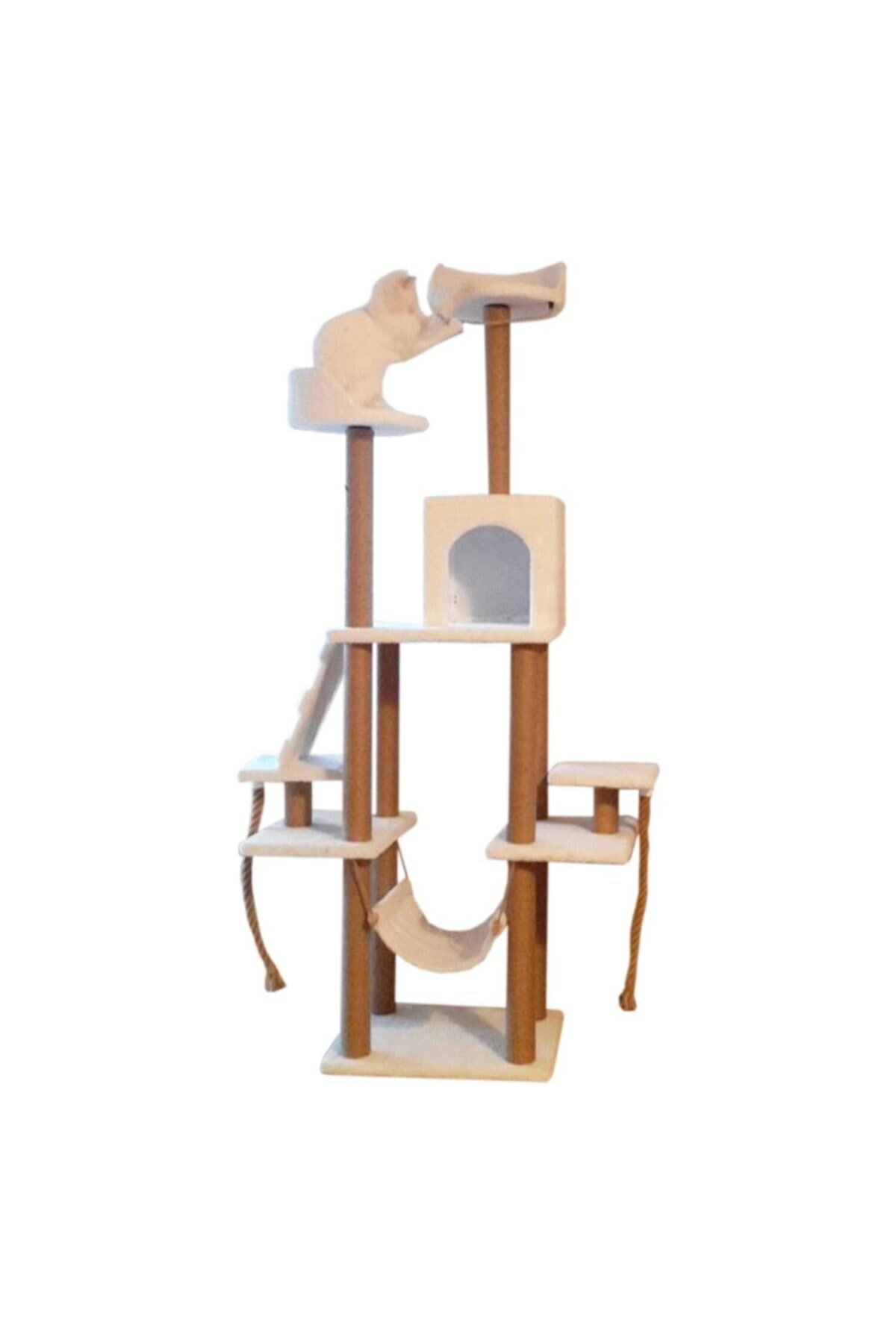 PETHOME ÇOK KATLI YUVALI KEDİ TIRMALAMA VE OYUN PLATFORMU Kediler için eğlenceli bir oyun platformudur Yetişkin ve yavru kedileriniz için özel olarak üretilmiştir.Yetişkin ve Yavru kedilerinizin kendilerine ait özel oyun alanlarına sahip olabilmesine olanak sağlar. Örme keten halat özelliğinden dolayı dayanıklıdır, Kediler için, tırmanma, tırmalama, gerilme ve yuva ihtiyaçlarını aynı anda karşılamak amacıyla özel olarak tasarlanmış, sisal tırmalama kolonları, welsoft peluş kaplı yuvası bulunan tırmalama setidir. Tüm yaş kediler için uygun, her tarafı peluş kaplı, tüm taşıyıcı dikmeleri tırmalama silindiri olan, tamamen demontable, ekstra sağlam, üzerinde birçok katı, balkonu, kapılı kedi evi ve oyuncak takılabilen elastik ipleri bulunan, uyuma-uzanma alanları ile muhteşem kedi kulesidir kolay temizlenebilen welsoft kumaş kaplı tablalardan oluşmaktadır; Taban ölçüsü : 40X50 cm; Yüksekliği :185 cm; Yuva ölçüsü:30x30x30 cm; krem renk ;