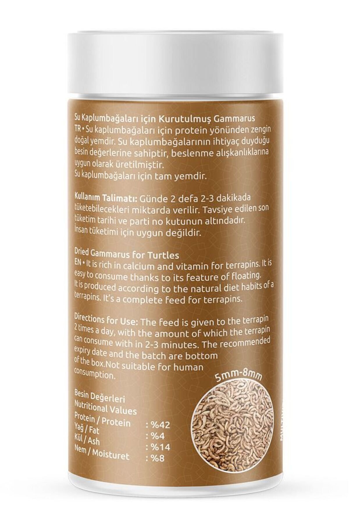 Su kaplumbağaları için doğal protein kaynağı, 1.sınıf kurutulmuş gammarus yem.; Protein: %42, Yağ: %4, Kül: %14, Nem: %8