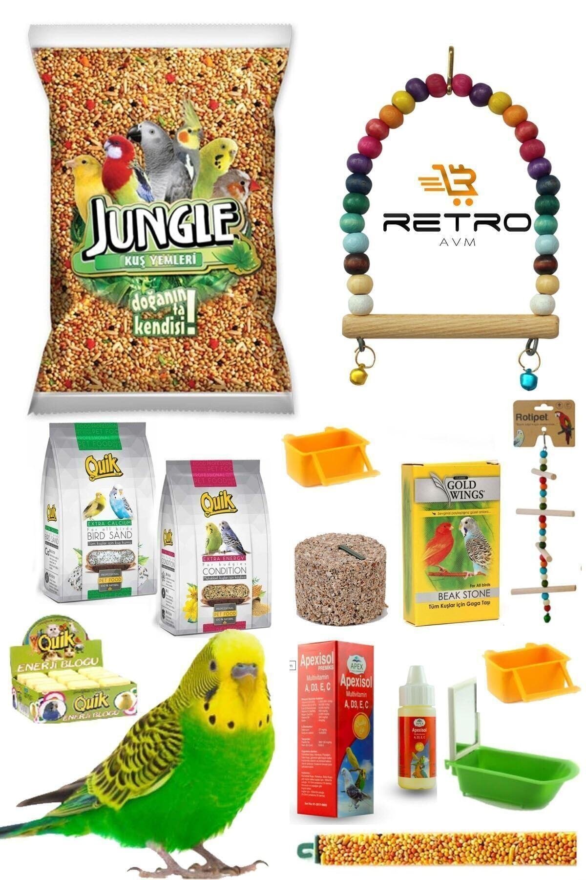 Jungle 13 Parça Muhabbet Kuşu Yem, Bakım Ve Vitamin Seti