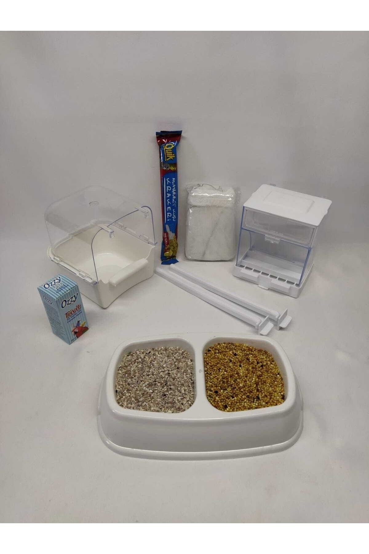KAFES İHTİYAÇ SETİ KAFES EK MALZEME SETİ AKILLI YEMLİK BANYOLUK SETİ BEYAZ SET AKILLI YEMLİK, BANYOLUK, KAFES TÜLÜ, 1 ADET KRAKER, 2 ADET TÜNEK, 1 ADET VİTAMİN, 200 GRAM KALİTELİ MUHABBET KUŞU YEMİ, 75 GRAM KUŞ KUMU SETİ OLARAK GÖNDERİM SAĞLANACAKTIR;