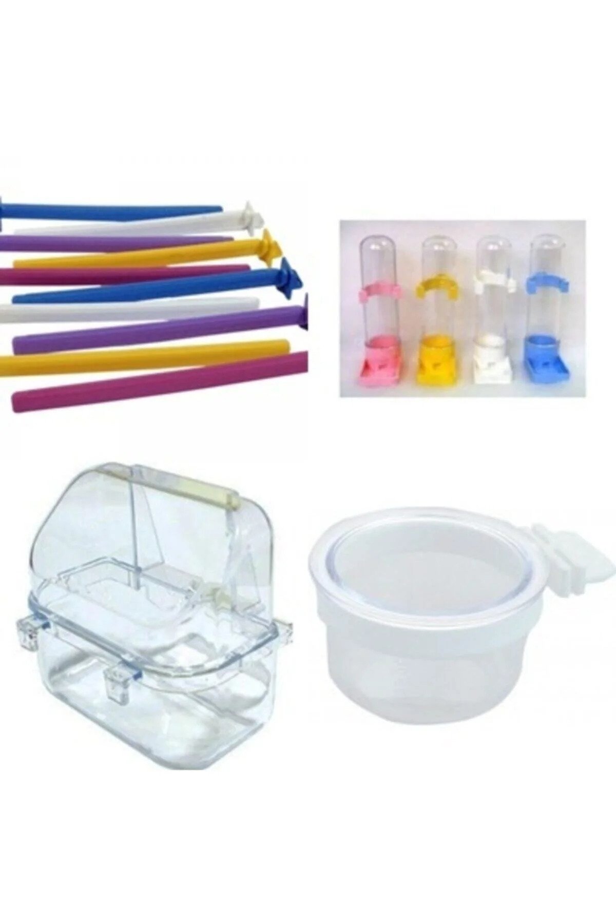 Muhabbet Kuşu Kafes Iç Seti ( 2 Yemlik+ 1kelepçeli Mamalık+ 2tünek +suluk)