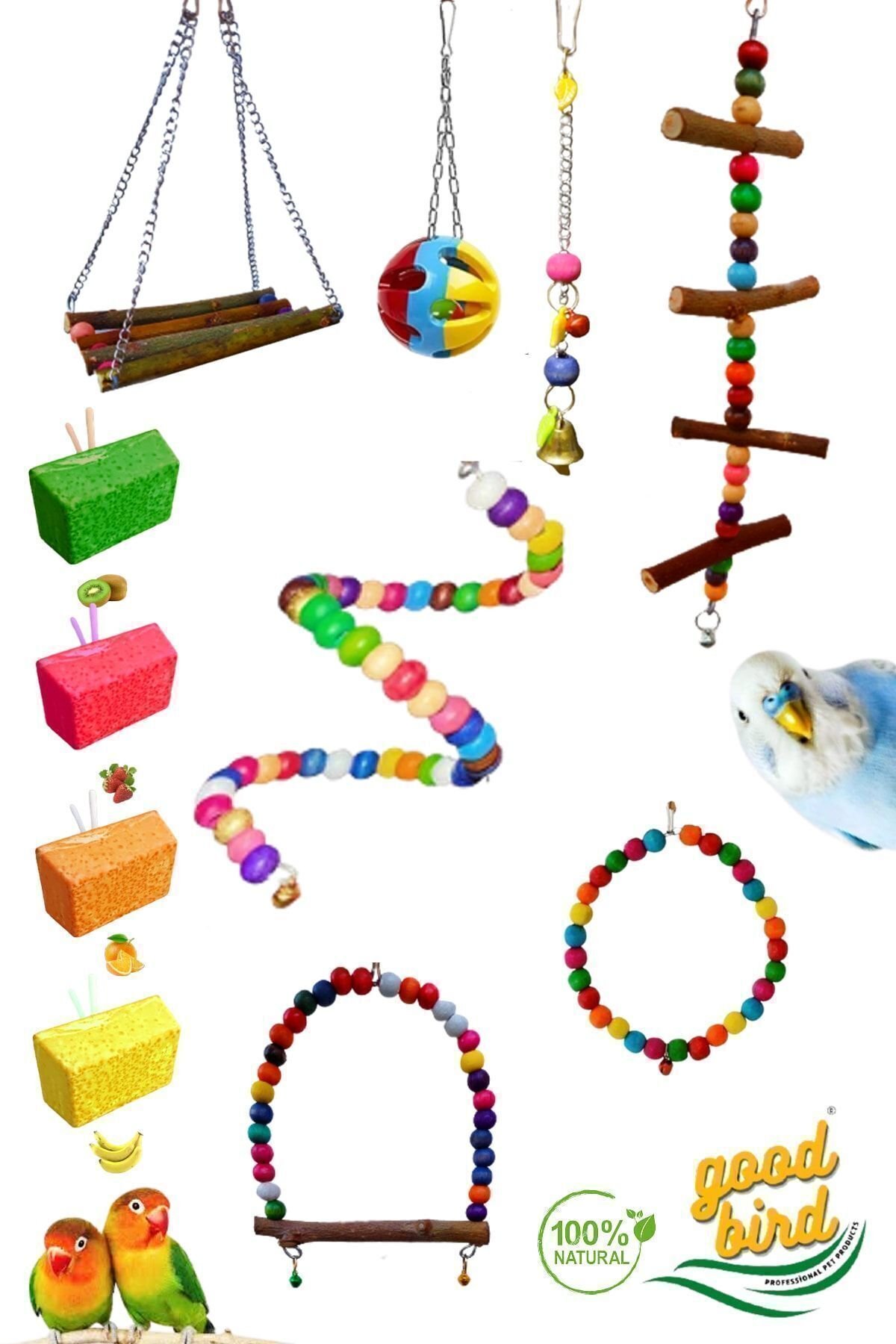 "Muhabbet Kuşu Ve Papağanlar Için Mega Salıncak Oyuncak Seti 5 Li (1 ADET GAGA TAŞI) " için yorum yapan ilk kişi siz olun
