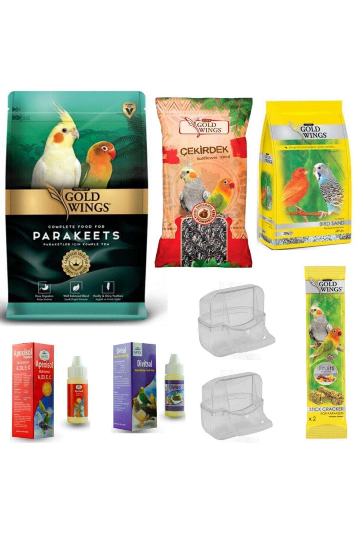 Gold wings parket cennet sultan yem ve besin seti içindekiler 1. ; Premium pareket sultan cennet yemi 1 kg 2. ; Gwc paraket çekirdeği 180 gr 3. ; Gwc kuş kumu 250 gr 4. ; Apex isol multivitamin 5. ; Apex divitsol bağırsak problemleri isal 6. ; Lüx mamalık 7. ; Lüx mamalık 8. ; Gwc paraket krakeri 2’li;