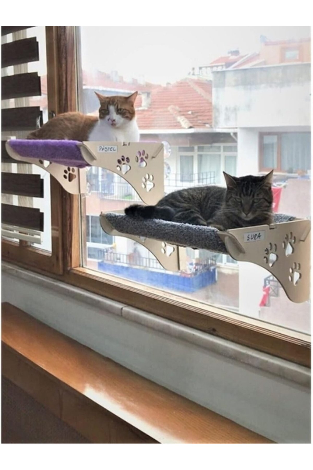 Petse Büyük Boy Ahşap Cama Yapışan Kedi Yatağı Vantuzlu